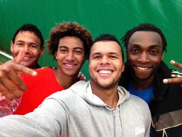 Jo-Wilfried Tsonga se svojí tréninkovou skupinou.